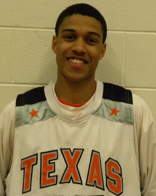 His backcourt mates are a fearsome foursome of 2012 guards. Chase Brogna of Houston St. Thomas, Joshua Hagins of Bossier City Airlne (LA), Devon Turk of Houston St. Pius, NBA Player's Camper Alex Caruso of College Station A&M Consolidated and 2011 G Jalen Washington of Pflugerville Hendrickson.